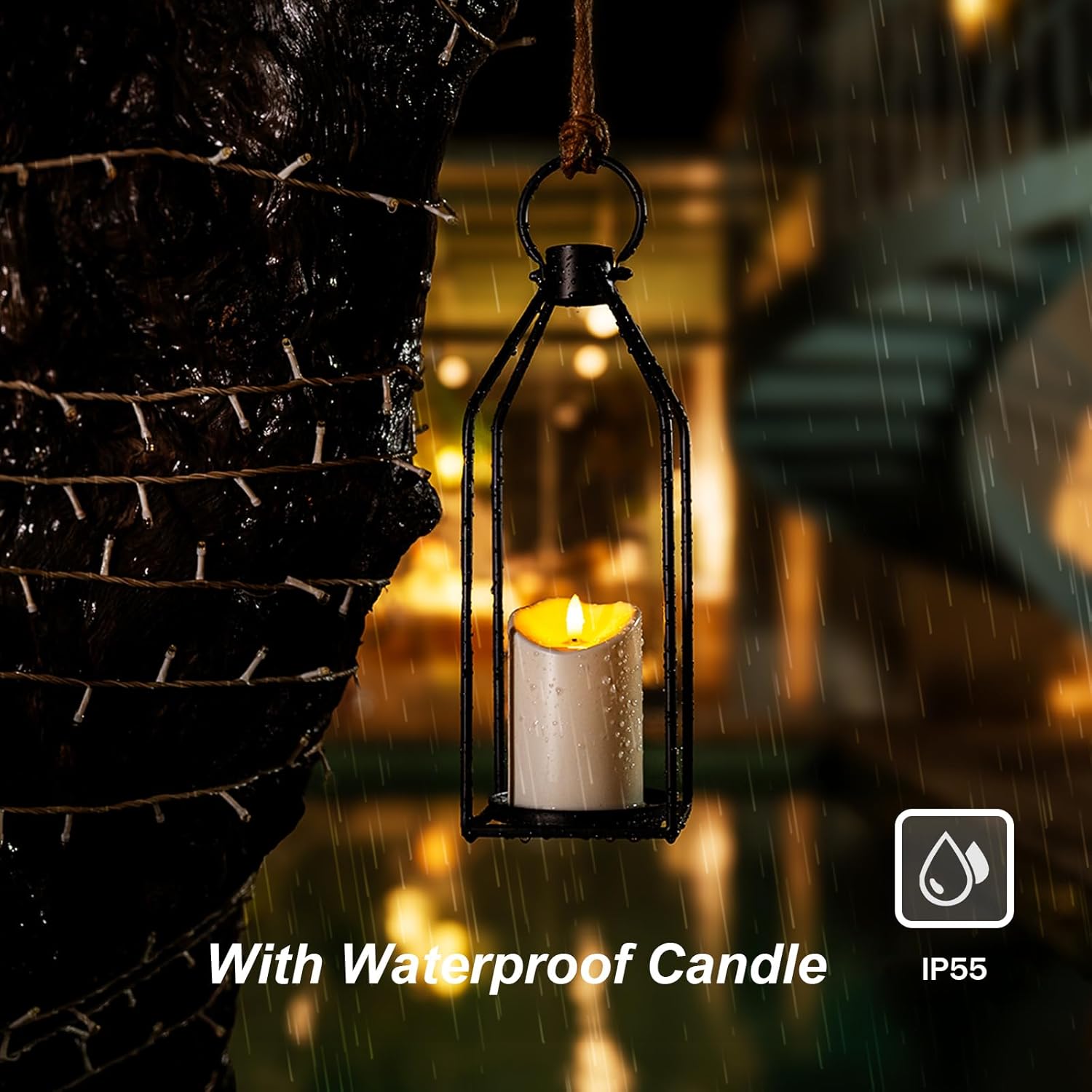 Each set includes two lanterns, complete with waterproof flameless candles that create a warm and inviting ambiance without the worry of an open flame. With the included remote timer, you can easily set the candles to turn on and off at your desired times, making it effortless to create a cozy atmosphere.