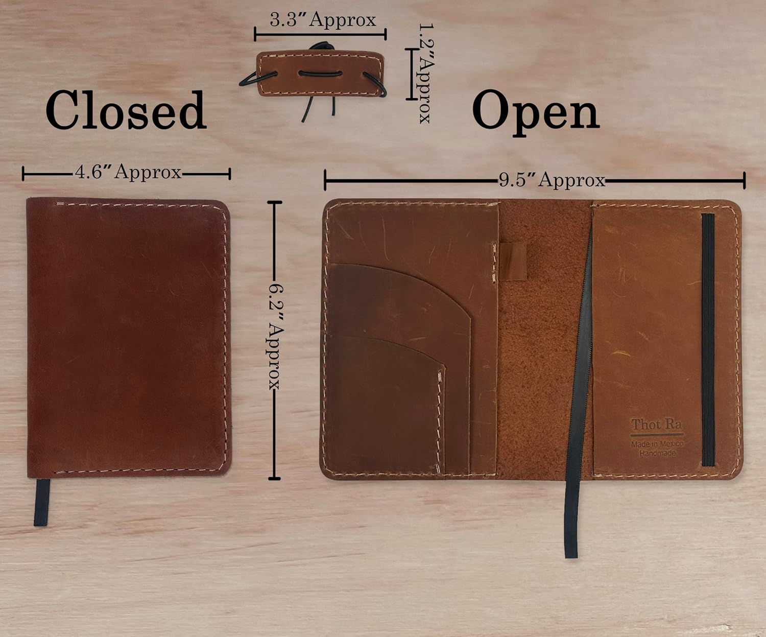 Thot Ra Leather Cover for Field Notes, Passport Cover, Leather Notebook Cover for 3.5″ x 5.5″ with Pen Holder, Only Cover (Bourbon)